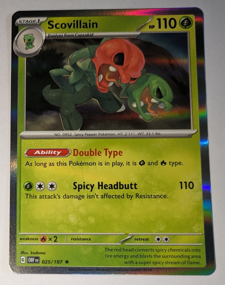 English Pokemon Scarlet & Violet Obsidian Flames 025/197 Scovillain Holo